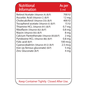 Bio Grow contains multivitamins including vitamin A, D, C, E and B-Complex that promotes general health, growth and development of children.
